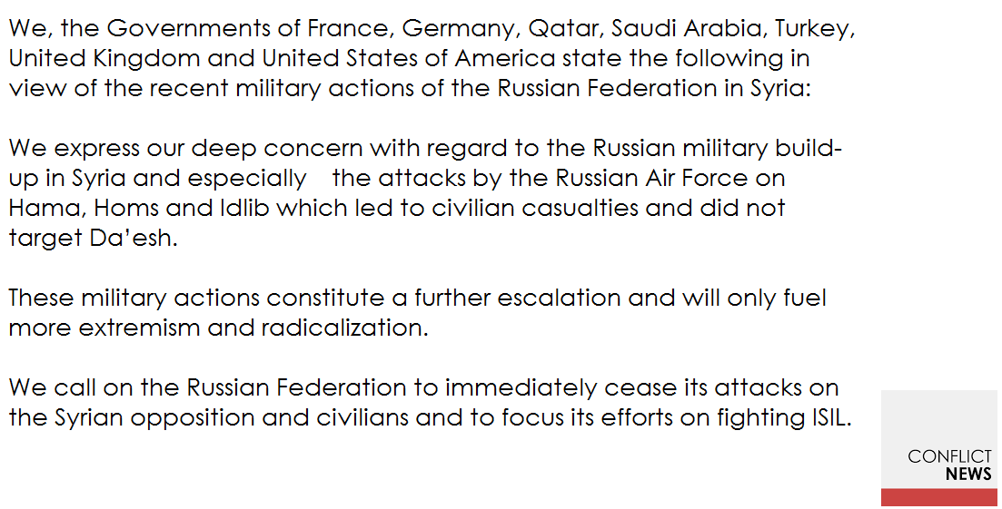 Insa Rusia nu are nevoie sa trimita trupe la sol ci doar sa „tina spatele ” din punct de vedere al atacurilor aeriene, pentru ca la sol lupta deja armata siriana, Hezbollah si voluntarii iranienii, care daca sunt sprijiniti din aer intr-un mod profesional ar putea sa intoaraca soarta razboiului.