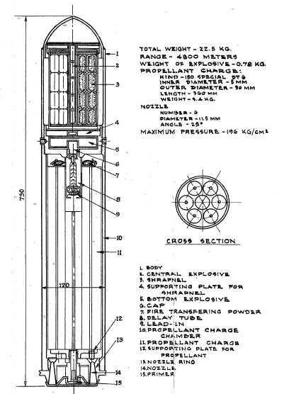 Posibil ca spre sfarsitul razboiului sa fi intrat in serviciu un nou model de proiectil, cu masa de 22.5kg, bataia maxima de 20.500m si plafonul maxim de 13.000m la 75 grade.