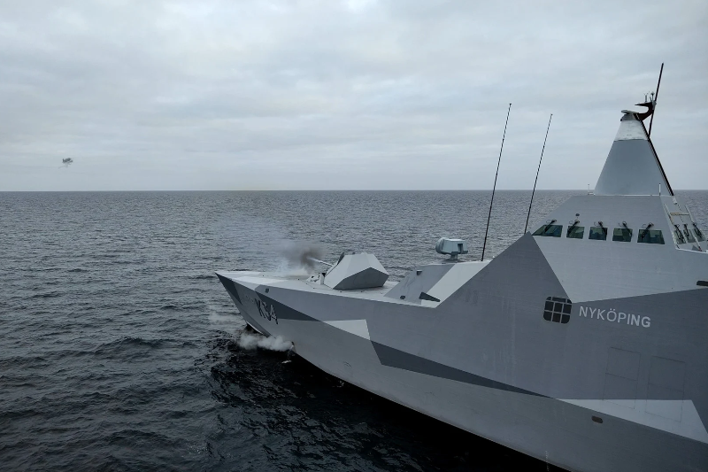 Lucrarile au fost finalizate cu testarea armamentului corvetei HMS Nyköping (K34), mai precis a tunului sau principal Bofors Mk3 cal.57mm, la distanta contra dronelor de mici dimensiuni.