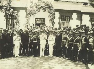 LA SERBAREA PATRONULUI REGIMENTULUI 2 PIONIERI DE GARDA 21 MAI 1932 – Cazarma Otopeni Regele Carol al II lea, proprietarul Regimentului, Marele Voievod Mihai de Alba Iulia, Nicolae Iorga, prim ministru, Gl. C. Stefanescu Amza, ministrul armatei, Generalul Partenie, secretarul general al M.A., foștii miniștri, Gl. Cihovschi și Gl. Istrate, Inspectorul general al geniului, Gl. Ignat