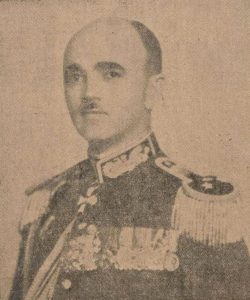 Colonelul C. Eftimiu, purtând uniforma de zi a Regimentului 2 Pionieri Gardă, se distinge pe epoleții negri cifrul regal, chestiune specifică doar unităților de gardă.