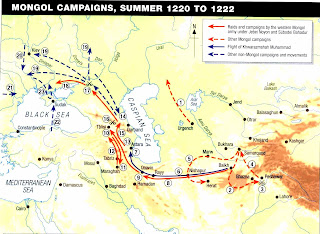 După victoria decisivă de la râul Kalka de la 31 mai 1223, Gengis Khan le ordonă lui Subotai şi Djebe să facă joncţiunea cu Jochi şi împreună să-i atace pe bulgarii de pe Volga, dar aici sunt învinşi la trecerea fluviului. Primesc ordin să revină acasă, dar Djebe moare cu febră pe drum. la marele Kurlutai ţinut la sosirea lor acasă, Subotai raportează lui Gengis Khan despre marşul său epic, cel mai mare raid călare din istorie. Jochi este iertat de presupusa insubordonare când a refuzat să i se alăture lui Subotai pe motiv că era bolnav. Atât Jochi, cât şi Gengis Khan vor muri în 1227. Succesiunea imperiului va fi preluată de Ogodai, fiul hanului, care împreună cu fratele său Batu vor da cea mai cumplită lovitură estului Europei abia paisprezece ani mai târziu.