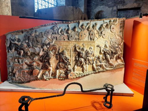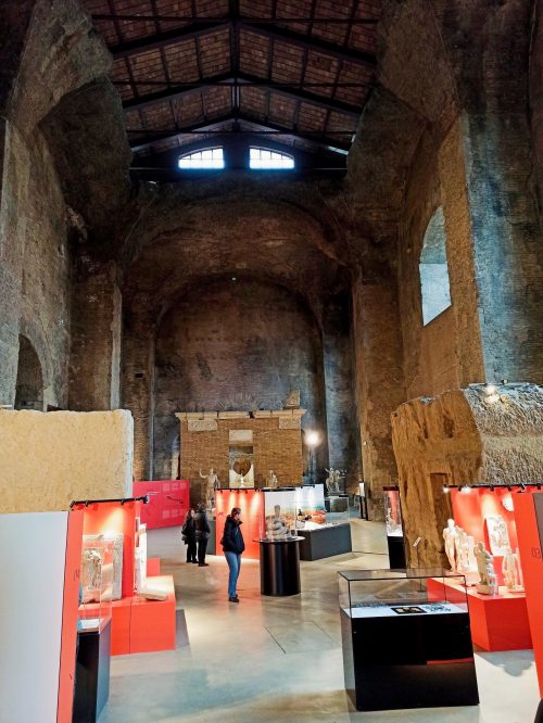 Scena de la intrarea expozitiei e usor de recunoscut, originalul se afla la nici 3 kilometri de Termele lui Domitian: